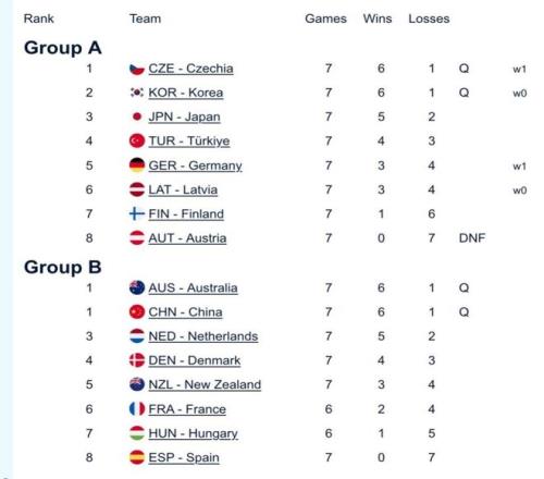 中国混双冰壶小组第二出线,需连赢两场附加赛才能晋级冬奥会