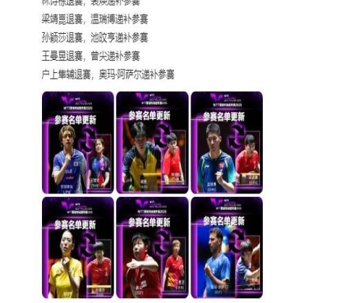 WTT蒙彼利埃冠军赛参赛球员更新:国乒多位选手退赛
