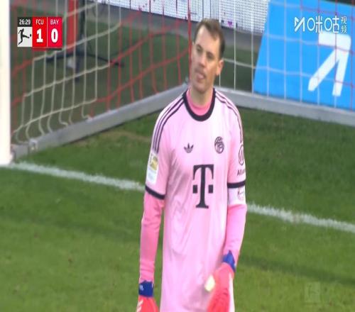德甲主场龙发威,诺伊尔惊天失误,拜仁半场不丢球金身被破 -